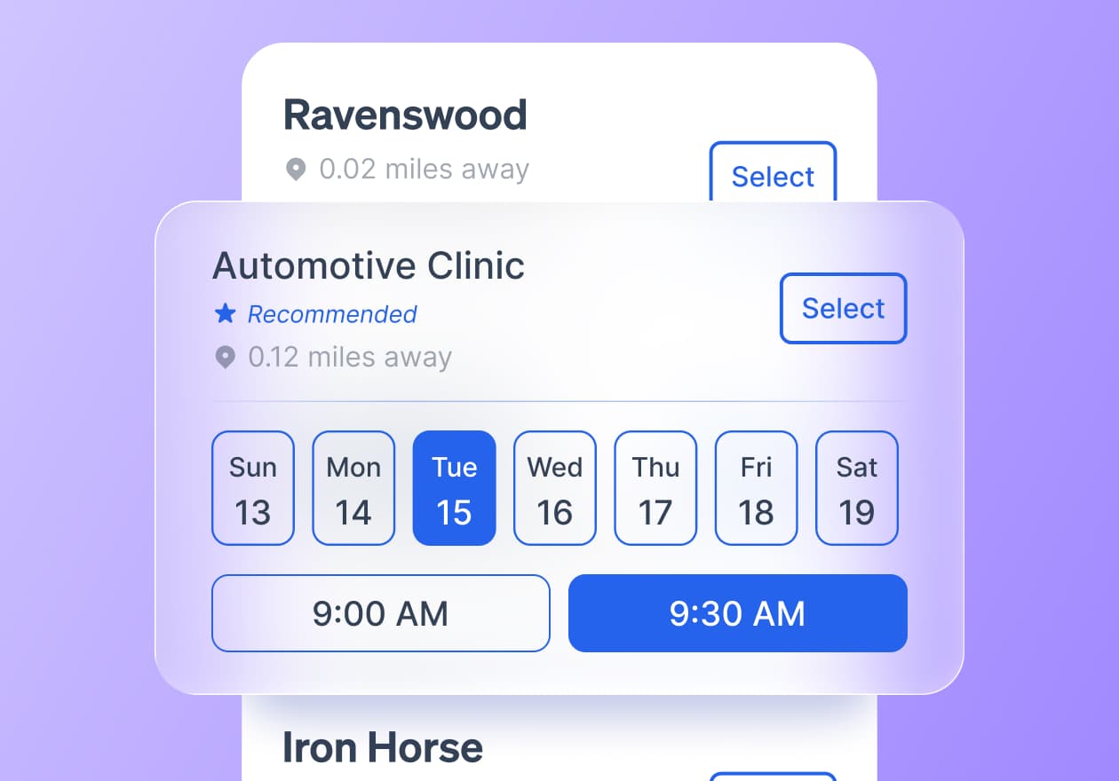 Instantly create reservations with major providers. Users skip the phone calls and coordinate everything digitally, viewing their reservation details, receiving pickup instructions, and managing changes in a simple, self-service experience.
