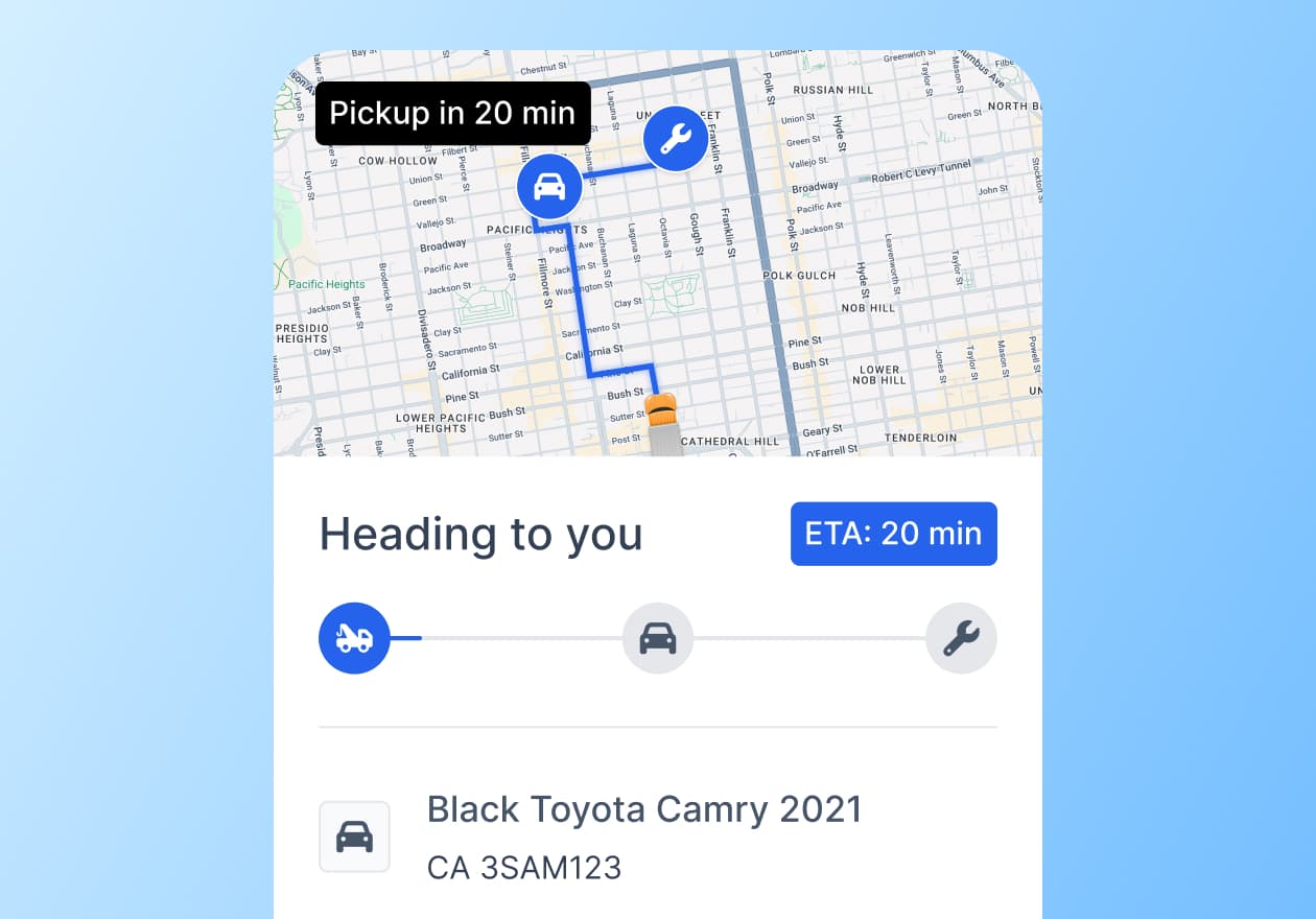 Dispatch scene and non-scene tows via built-in integrations. Modify dispatches on the fly, and give both users and adjusters real-time visibility, so everyone knows exactly when help is arriving and where the vehicle is going.
