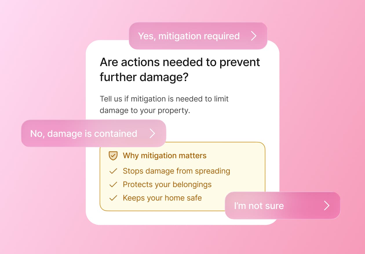 Policyholders can schedule inspections, repairs, rentals, or contractor visits on their terms, receiving real-time confirmations and updates in an intuitive UI.